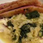 We ate it for dinner and/or work lunch over about a week period. One way I served it was with some quick lemon-marinated zucchini and red onions. For this dish I made a sauce from pureed chives, cucumbers, yogurt and sour cream.