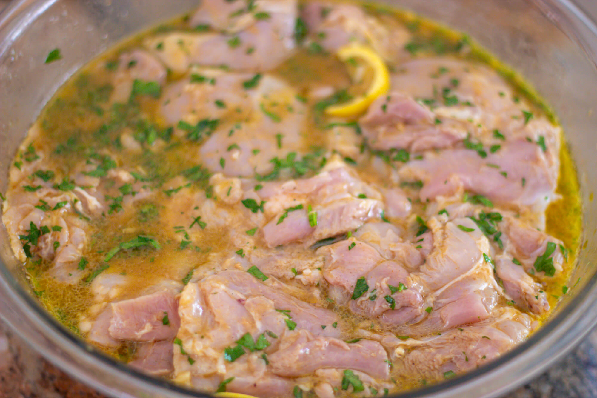- 1500 gr Chicken pieces, preferably boneless skinless thighs about 3.25 lb