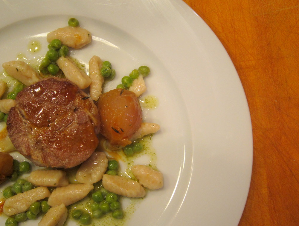 Coppa e Cavatelli: Pork Collar in Whey, Ricotta Cavatelli, Onions and Peas