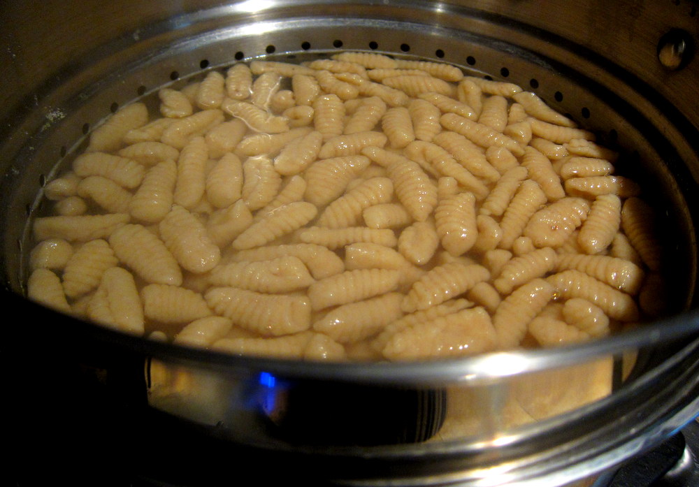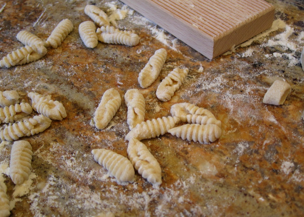 I prepared some good ricotta a day or so before using Jenn Lewis’ recipe from her Pasta by Hand book. It’s a really great book for all things pasta that require no machines or rolling. They are mostly referred to as “dumplings” in her book and she has a fascinating collection of pasta shapes and recipes from all over Italy with ingredients ranging from potato gnocchi to grated “pasta” and 100% semolina pasta.