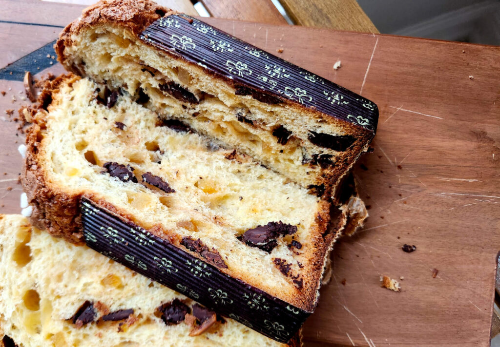 The cooled Panettone will last for a couple of weeks well wrapped in plastic. Slice through the paper, peel it off and enjoy. Any leftovers make fantastic French toast. Merry Christmas!