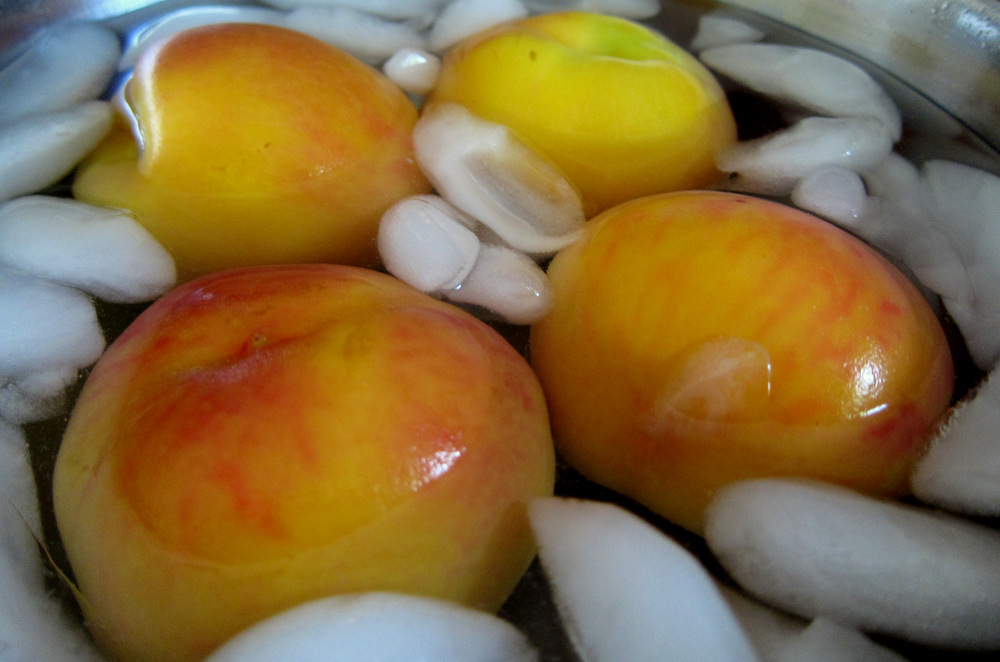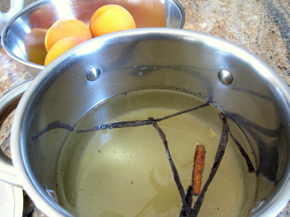The blue print here is a buttery cookie base, a Sablè Breton to be more specific, topped with poached peaches and served with airy crème anglaise (custard sauce) and garnished with pistachios. I prepared the sauce using the modern sous vide method from Modernist Cuisine at Home instead of the traditional stove top method. It’s simpler and requires little attention while at the same time pretty much eliminates the room for error that could result in a curdled sauce. To prepare it, a mixture of yolks, cream, milk, sugar and vanilla goes in a Ziploc bag. This is then cooked in 82 ºC water for 45 minutes. I chilled the mixture and whisked it for a few seconds and it is done. In addition to the vanilla I added bourbon to the sauce after chilling. Bourbon and peaches go great together so that made perfect sense. I purposefully did not cook the bourbon to evaporate the alcohol because I wanted to keep all the flavor in as well as a bit of kick.