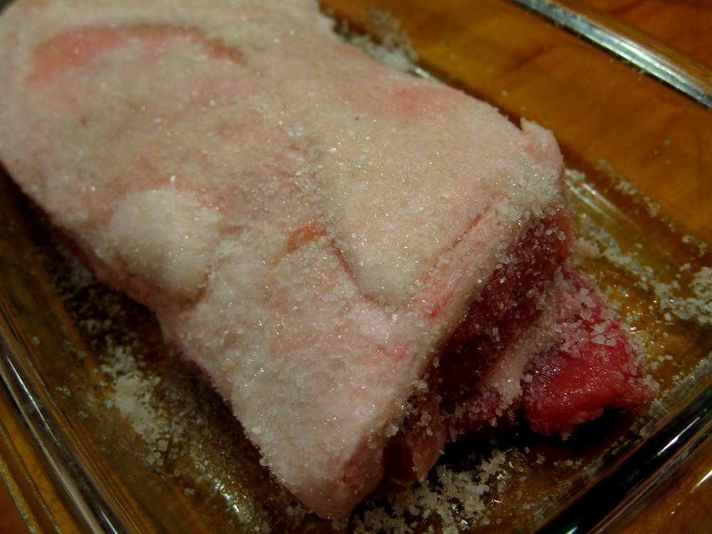 When Jason from Yonder Way Farm asked me if I want the pork belly pieces he had on hand as I was picking up some meat from him my instant response was “well, of course I do!” These are nice slabs of about 5 lbs each and around 2 inches thick. I only wish they came skin on. I cooked a few things with the first slab and the other one is still sitting in the freezer.