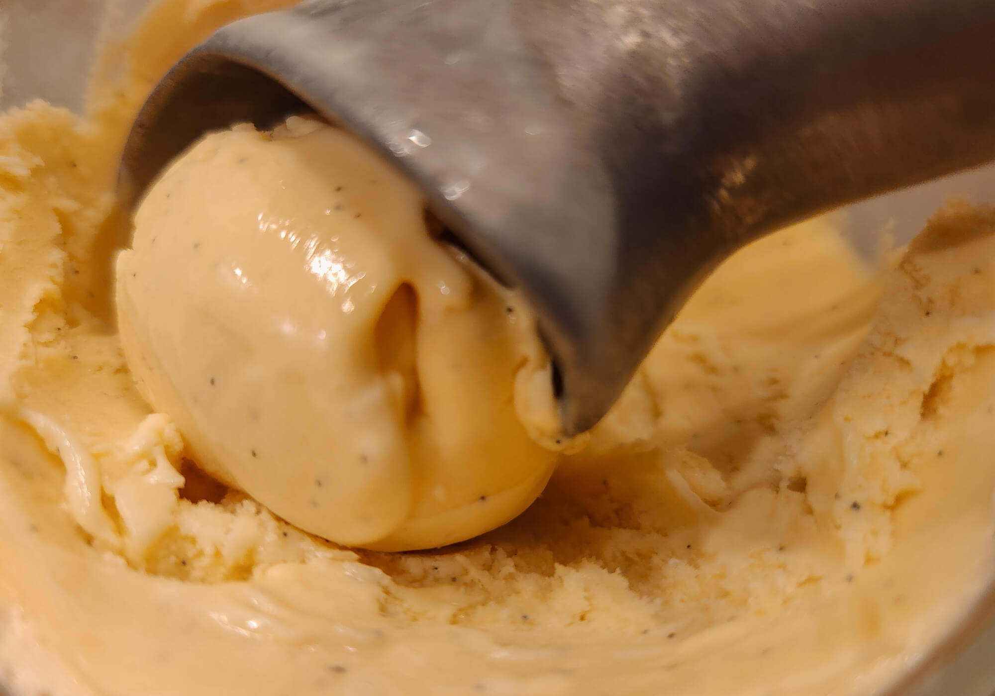 - Adding some alcohol to the mix (Bourbon, Rum, Vodka,…) to lower the freezing point slightly and help with making the ice cream scoopable right out of the freezer.